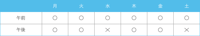受付時間 午前9:00 ~ 12:30 / 午後3:00 ~ 7:30